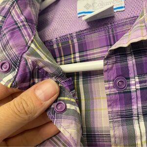 Columbia girls Youth Purple plaid cap sleeve Omni Shade button snap shirt 6X