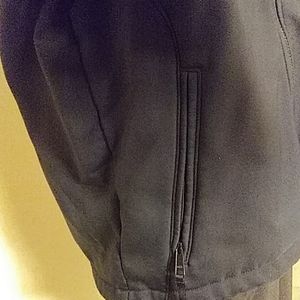 Black Columbia jacket with the smooth fleece material. Windproof and very slimming. I've always loved you Columbia jackets and this is one of my favorites. Looks absolutely brand new only worn twice but looks like it's never been worn