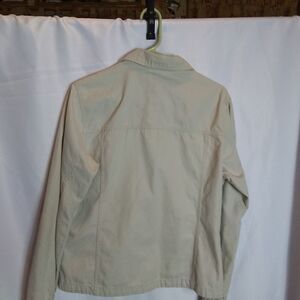 cream colored, sports jacket, zipped front and zip pocket. cotton. chest 21" length 24". NN