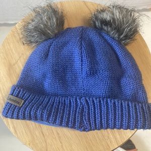 Columbia kids fleece lined winter hat periwinkle blue with pompoms