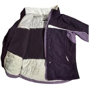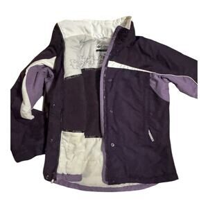 Columbia ladies hooded winter ski jacket purple & white size medium