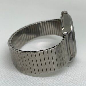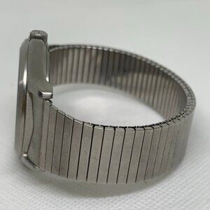 Columbia men date watch analog Quartz 38mm round case silver tone 100MWR all stainless steel, stretch band size 7” , in good condition battery installed