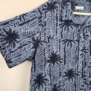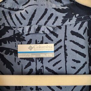 Columbia men sz XXL short sleeve button down shirt blue palm trees