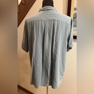 Mens button up front top. Collared. Short sleeves. 1- front pocket. 7- button up front. OMNI-SHADE sun protection. Good, used condition.