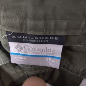 $ Columbia men's olive green cargo short omni shade protection size 38X10