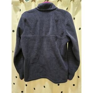 Columbia navy blue 1/4 snap fleece pullover jacket size large. Bright purple trim, no pockets, slim fitting, light/medium thickness.