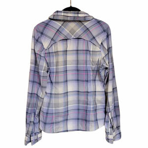 Columbia purple plaid long sleeve button down shirt in pre-owned excellent conditions. Has some mesh lining, See pictures for measurements.