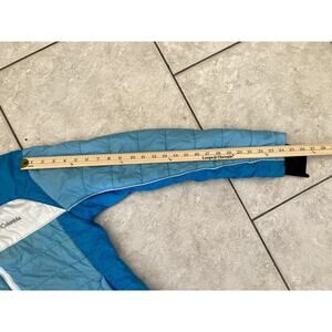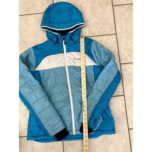 Columbia puffer parker coat womens large omni heat hooded light weight blue