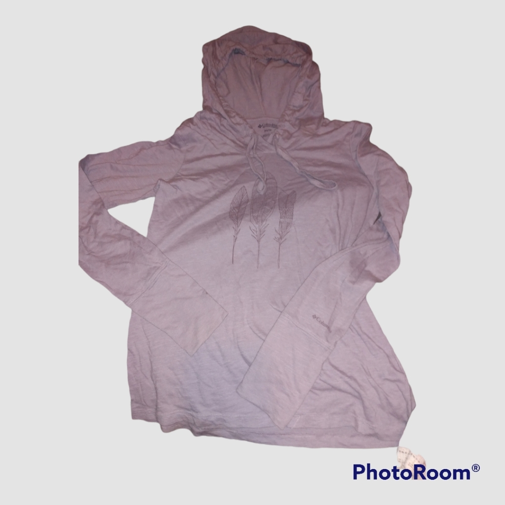 Juniors Columbia long sleeve hooded pullover, light purple with three feather design. Great condition!