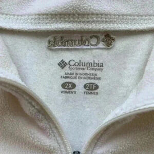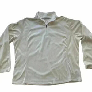 Columbia lightweight quarter zip fleece. Color: Ivory/off white. Long sleeve. Zipper is functional. 100% polyester. Measurements laying flat: Armpit to Armpit 26.5”. Shoulder to hem 26”. Pet free smoke free environment.