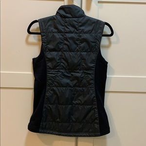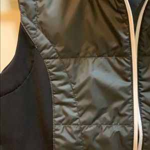 Quilted mid front and mid back with stretch material on both sides. Side zipper pockets. Like new