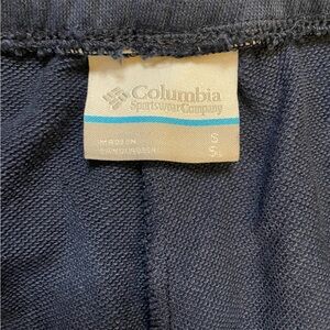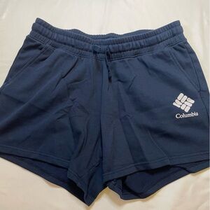 -Features: Columbia size small navy blue sweat shorts. No stains or holes. Worn once or twice.