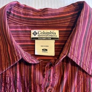 Columbia sportswear company button down shirt striped embroidered front design