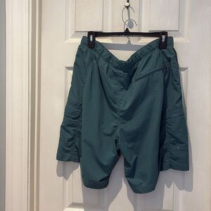 Stylish teal cargo shorts featuring a convenient belt. Perfect for casual outings.