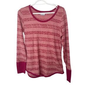 Columbia t-shirt Henley knit top women's large red pink cabin look comfortable