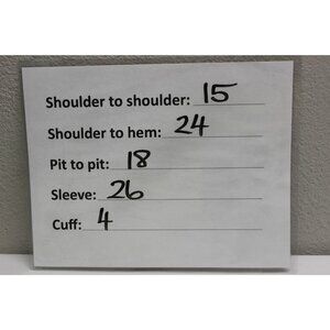 See measurements in images / listing and compare them to your best fitting garment to get sizing.
