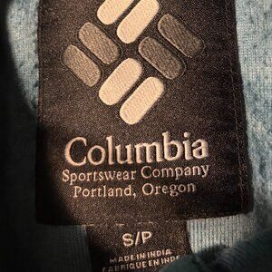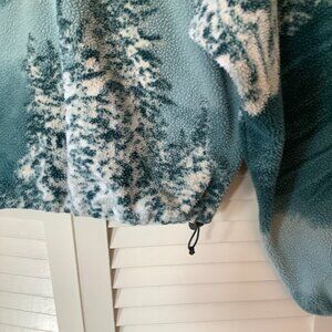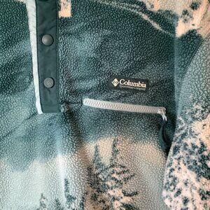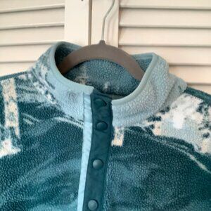 Columbia women's Helvetia Cropped Half-Snap fleece sweatshirt, size small. Gorgeous blue tones with a wintry mountain scene. Really cute! Gently worn, in excellent used condition. No rips or stains.