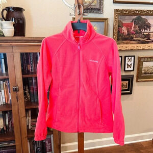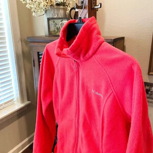 Columbia women’s full zip fleece jacket mock neck pockets SZ M pink