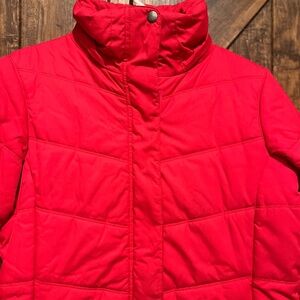 Columbia women’s hot pink puffer jacket with zippers and buttons size med EUC