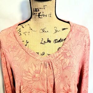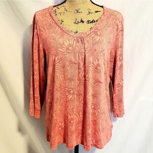Vibrant coral floral print ³/⁴ sleeve top with rouched neck by Columbia Size L #0473B