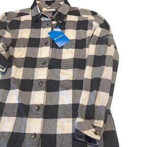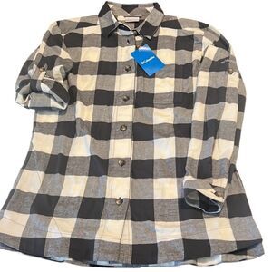 Columbia Holly Hideaway Black and White Checkered Flannel Shirt Size Medium NWT