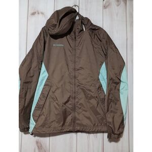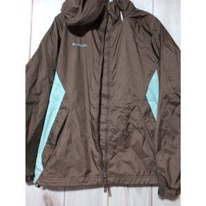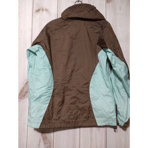 Columbia Jacket Ladies Large Waterproof Brown Teal Drawstring Waist
