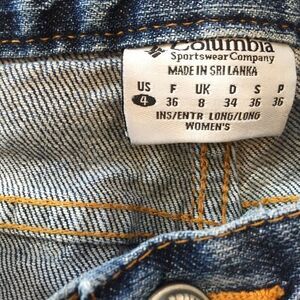Size 4 long Inseam approx 33” Rise approx 8” Slight wear along hem Columbia