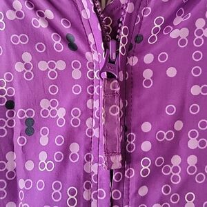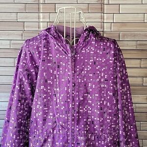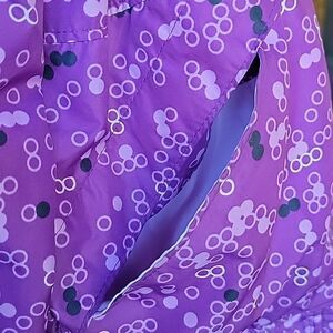 100% polyester waterproof fabric. Adjustable hood, soft fleece lining and elastic cuffs.