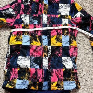 Columbia Pink, Blue, Black & Orange Winter park Coat, has snow guard, Velcro, zipper enclosure, Velcro cuffs, Size Large (14-16), Super Warm