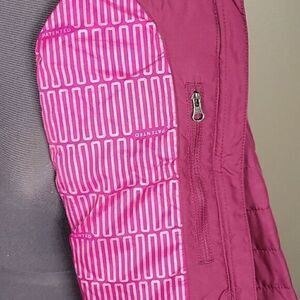 Water resistant with patented Thermal Coil technology. Featured in gorgeous dark raspberry color, it has a drawstring adjustable hem and an asymmetrical chevron pattern quilted into the front and back. It has zippered hand pockets and an interior security pocket. Content: shell 100% polyester, lining 100% nylon, insulation 100% polyester.