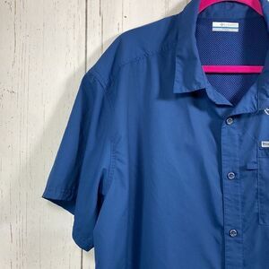 Columbia PFG Mens Blue Short Sleeve Button Shirt