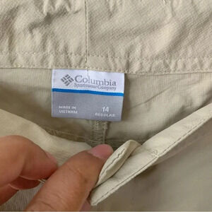 Columbia Performance Fishing Gear Pants Sz 14 Beige Roll Up Straight Wide Leg