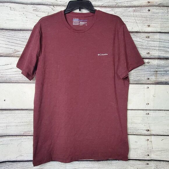 Columbia Sportswear women’s burgundy short sleeve t-shirt in size Large. Features a classic crew neckline, subtle Columbia logo at chest, and soft cotton blend with stretch for all-day comfort. Great for casual wear, outdoor activities, or layering.