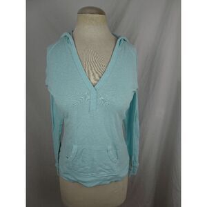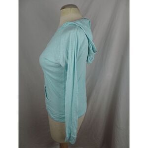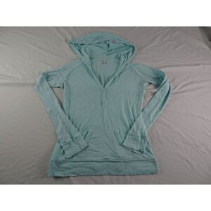 (X) Columbia Women Long Sleeves Top with Hood. Preowned. Stains on cuffs shown in pictures. Please check measurements for the perfect fit.