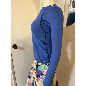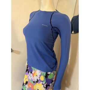 This is the Omni heat long sleeve base layer from Columbia, which retails for $80. This is in perfect condition in a periwinkle blue with black over stitching. It is lightweight and very stretchy and comfortable machine washable no signs of use whatsoever. Perfect preowned condition.