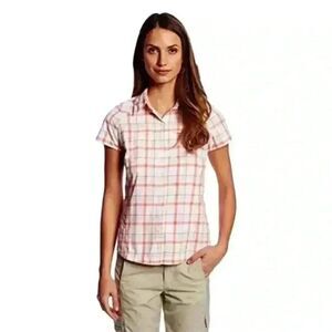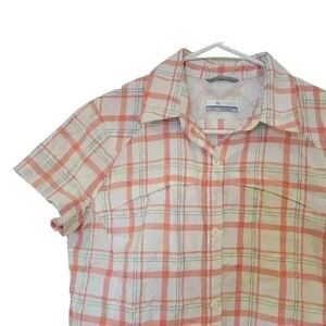 Columbia Women's White & Peach Nylon Plaid Silver Ridge Short Sleeve Button Down Vented Top GUC sz L