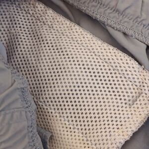 Quick dry fabric. Adjustable belt in waistband. One back, side and 2 cargo pockets. Size L measures 34-40 at waist, 46 at hips. 12 inch rise, 6.5 inch inseam. Great quality.