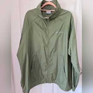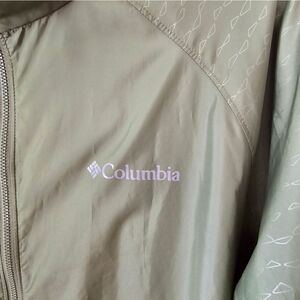 Columbia Windbreaker NWOT, Womens Size Large. Gorgeous Olive Green Color with patterned accents on sleeves.