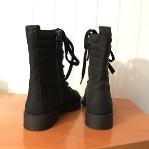 Lace and zip up combat boots. Comfortable, sturdy boots, goes with jeans white tees jean jackets or