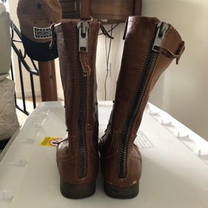 Size 8 Homemade Light brown lace up combat boots with fold down clips and pattern on inside #boots