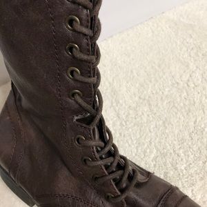 Dark brown combat boots. Lace up front. Very simple. Size 7.