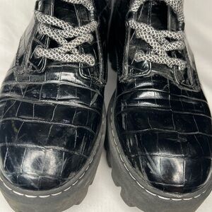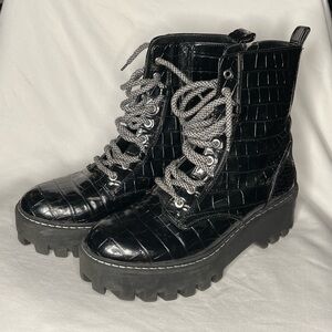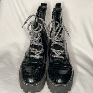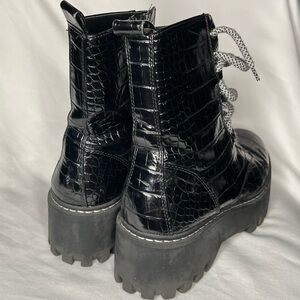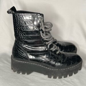 Zara size 40 platform combat boots they are black snack skin print they are lightly worn and do have a few scuffs can use a good cleaning just been put away