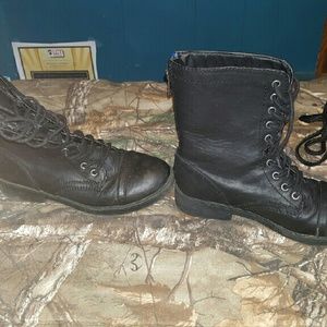 Black combat boots barely worn shoe laces were cut tho they were to long
