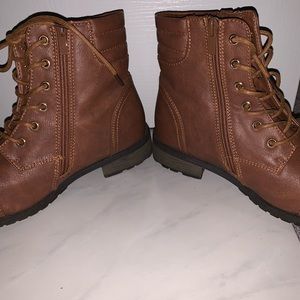 Like new cognac combat boots. Lace and zipper cute and stylish for everyday wear