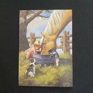 Combo Leanin' Tree Greeting Card/Magnet Horse Cats Child Country Don Crook© VTG