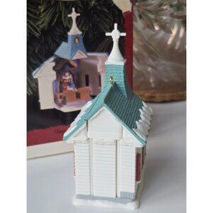 This enchanting 1996 Hallmark Keepsake ornament captures the spirit of Christmas with a quaint chapel opening to reveal a tender Nativity scene. A timeless treasure celebrating faith, love, and the joy of the season. Admire its intricate details and warm colors, evoking cherished holiday memories.