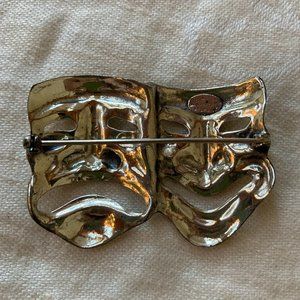 Sterling Silver Comedy and Tragedy Masks Brooch Pin.