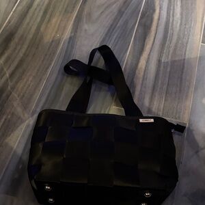 Stylish black woven shoulder bag by Conley. Perfect for any occasion.