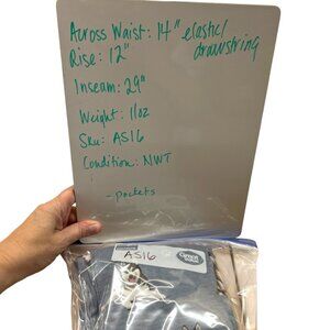 Across waist = 14 inches, Rise = 12 inches, Inseam = 29 inches