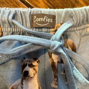 🐾🐾Comfies Pajama Pants Pittie Pup Dog Drawstring Lounge Pants Blue - Medium